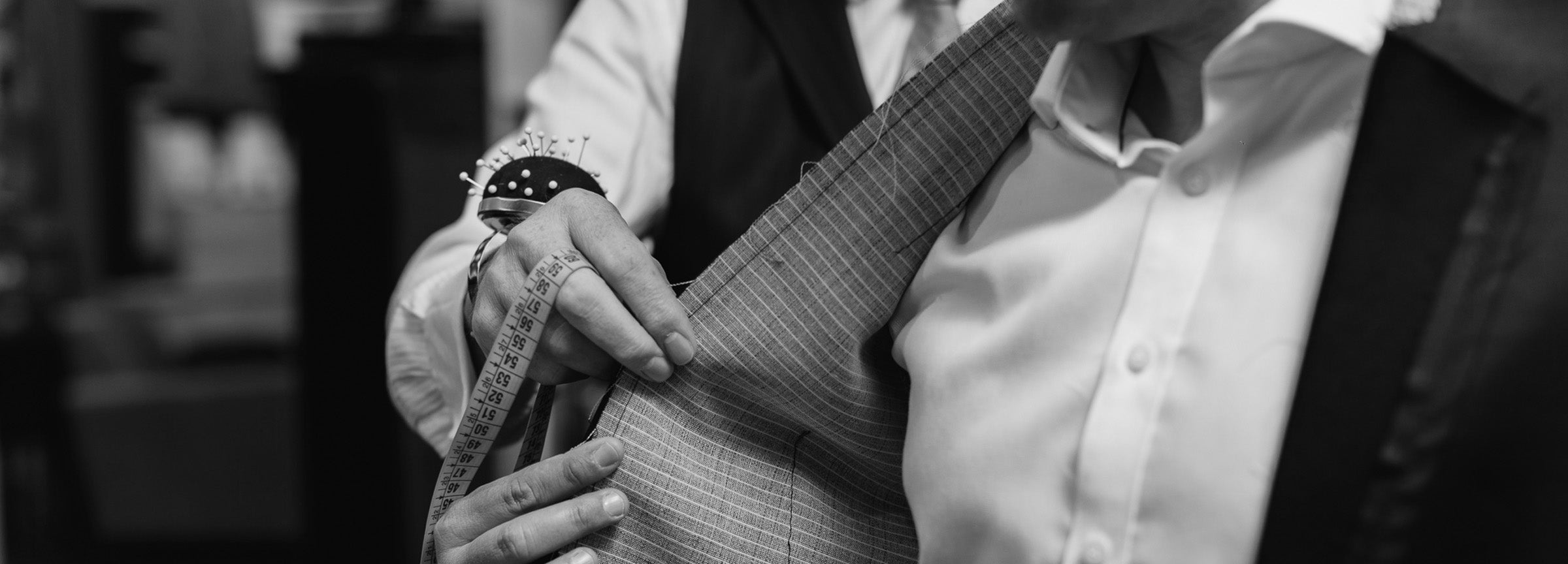 The bespoke process begins with a conversation. We’ll take time to understand your needs, whether it’s a single garment or an entire wardrobe, before guiding you through fabric, lining and style options. Then we take a full set of measurements and begin drafting your personal pattern.